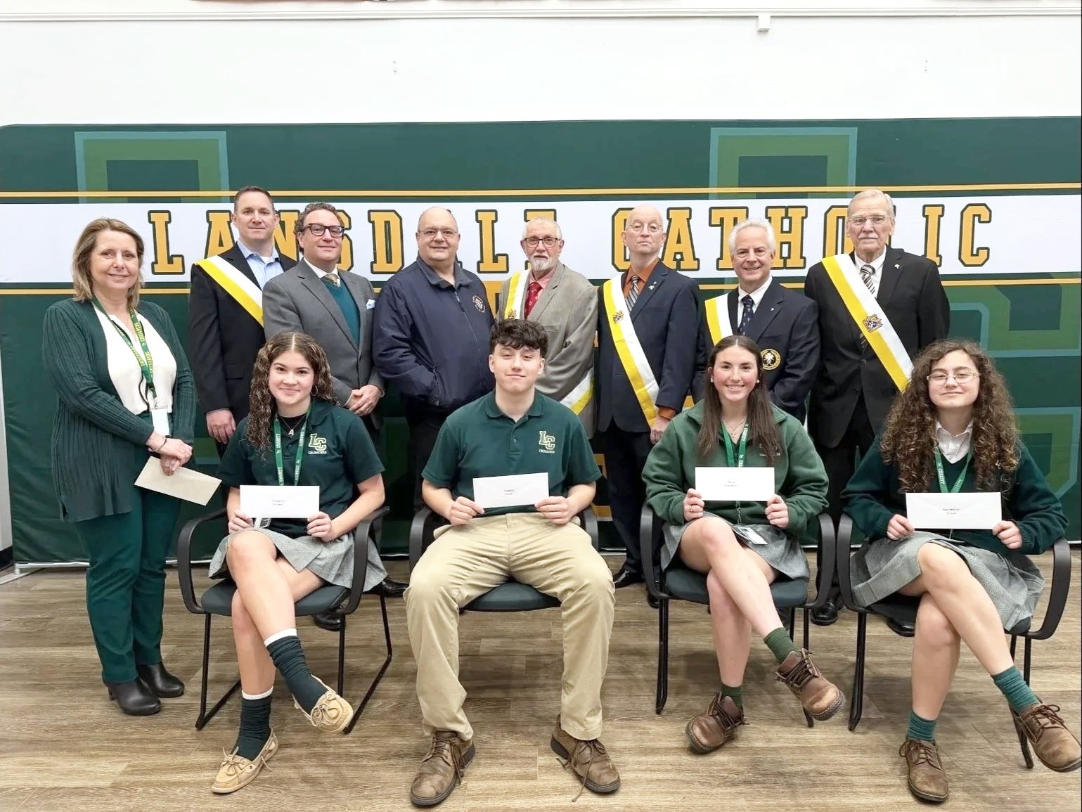 The Knights of Columbus Pius IX Council 4396 congratulated the recipients of Lansdale Catholic High School and Mater Dei Elementary School in Lansdale, PA. This is the annual Knights of Columbus scholarship program, which has awarded over $10,000 to students in these two schools.